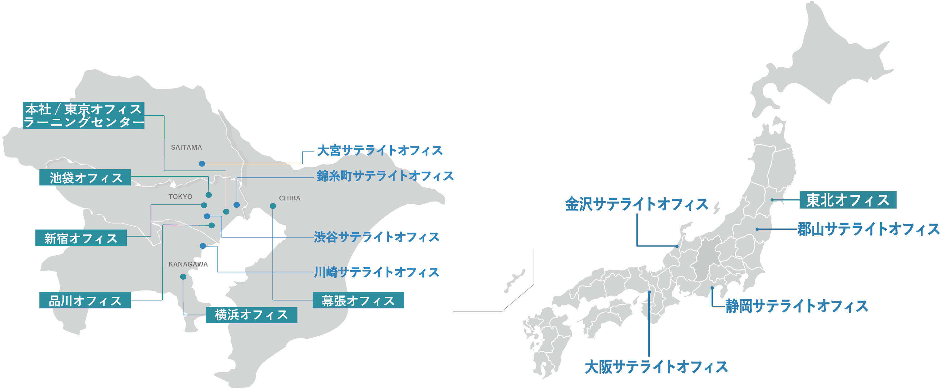 お客様先、プロジェクト参画先との物理的な距離を縮め、効率的なご提案・サポートを実現しています。